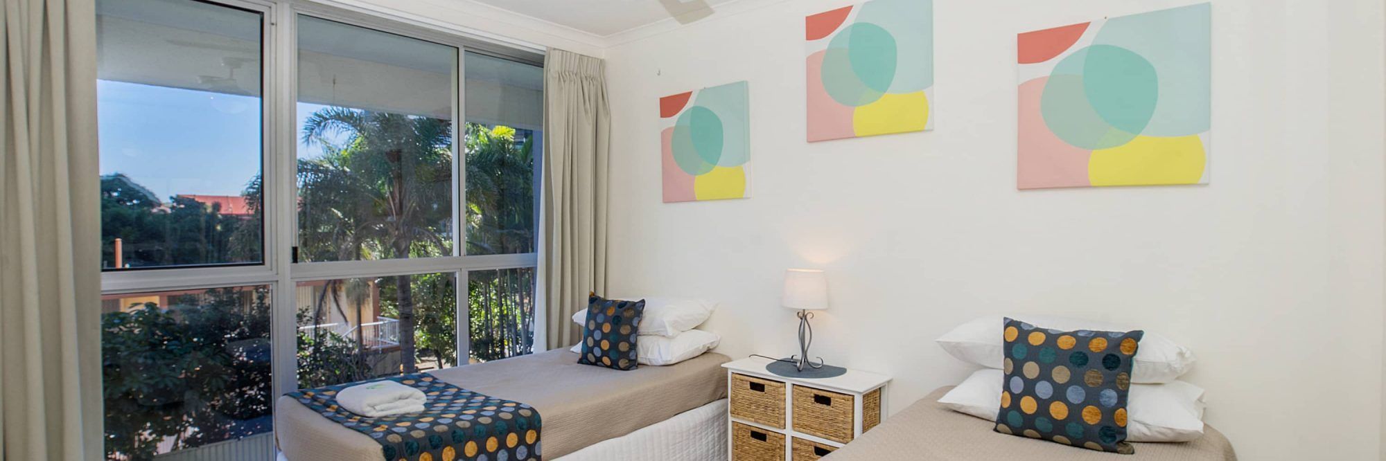 Our 2 bedroom apartments sleep 4 guests utilising the queen bed and 2 single beds. We are able to accommodate a 5th person on a rollaway bed at an extra cost of $30 per night. We do have a few options of 2 queen beds and a single bed, these are on request.