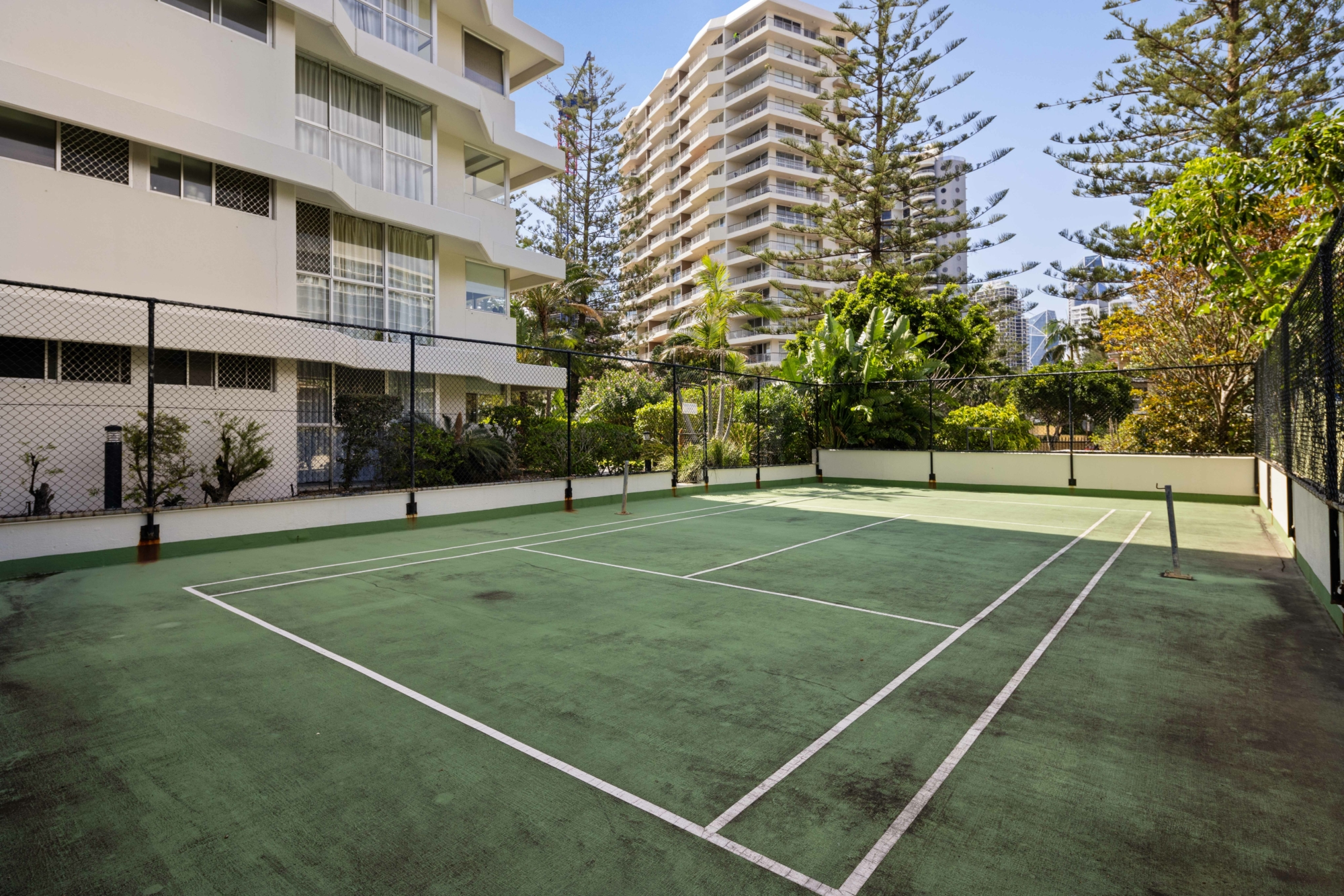 This premium Surfers Paradise apartment stands out for its unbeatable north-east corner position with panoramic ocean, river, and hinterland views, spacious two-bedroom layout with modern furnishings, and rare combination of boutique privacy in a low-density building paired with resort-style amenities including a pool, spa, sauna, BBQ area, and tennis court.